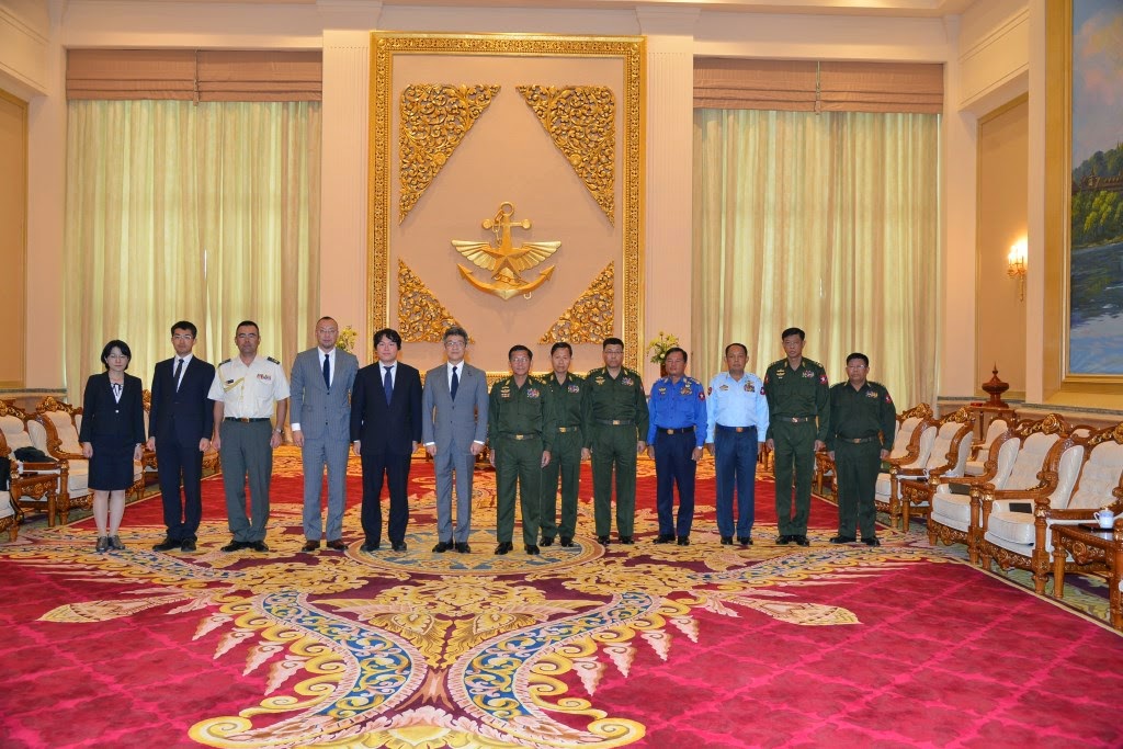 တပ္မေတာ္ကာကြယ္ေရးဦးစီးခ်ဳပ္ ဗိုလ္ခ်ဳပ္မႉးႀကီး မင္းေအာင္လႈိင္ သည္ ယေန႔နံနက္ (၁၀)နာရီတြင္ ေနျပည္ေတာ္ရွိ ေဇယ်ာသီရိဗိမာန္ ဧည့္ခန္းမေဆာင္၌ ဂ်ပန္ ကာကြယ္ေရး ဝန္ႀကီးဌာန ဝါရင့္ဒုတိယဝန္ႀကီး မစၥတာ ႐ိုတ တာခဲဒါအား လက္ခံေတြ႕ ဆုံသည္။