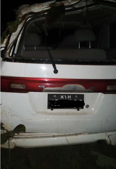 တိမ္းေမွာက္ရာ ကားေရွ႕မွန္၊ ေနာက္မွန္မ်ား ကြဲလၽွက္ ေတြ႕ရွိရၿပီး ယာဥ္ေမာင္းမွာ ဝဲဖက္နား