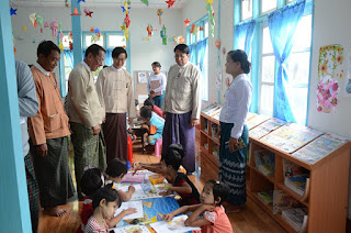 He said a community centre is a place for the general public to convene and discuss community matters. Afterwards, U Aung Myin Htun gave a speech and Dr. Thant Thaw Kaung explained how a mobile library works.