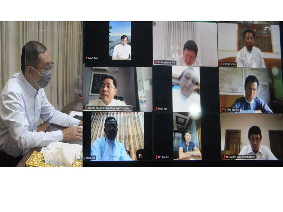 ဆက်လက်၍ ပြည်ထောင်စုဝန်ကြီးက ကျောက်စိမ်းများကို အရိုင်းအတိုင်း ပြည်ပသို့ တင်ပို့ခဲ့သည်မှာ နှစ်များစွာကြာမြင့်ခဲ့ပြီဖြစ်ကြောင်း၊ ရန်ကုန်မြို့တွင် ပင်လုံရတနာဈေး တည်ဆောက်ခဲ့သော်လည်း လုပ်ငန်းဆောင်ရွက်နိုင်ခဲ့ခြင်း မရှိခဲ့ကြောင်း၊ နေပြည်တော်တွင် ရွှေကြာပင်ကျောက်မျက် ရတနာဈေးကို ၂၀၁၂ ခုနှစ်ကပင် မြေဧရိယာ ၂၂၅ ဧက၊ အကွက်ပေါင်း ၁၂၂ ကွက်တွင် အချောထည်များ ထုတ်လုပ်ရောင်းချနိုင်မည့် အဆောက်အဦများနှင့် စက်ရုံအလုပ်ရုံများကို ဆောက်လုပ် ဆောင်ရွက်စေခဲ့ကြောင်း၊ အဆောက်အဦ အများစုမှာ ပြီးစီးခဲ့ပြီး ယခုအခါ လက်တွေ့ အချောထည် လုပ်ငန်းဆောင်ရွက်နိုင်သူ အနည်းငယ်သာရှိသည်ကို တွေ့ရှိရကြောင်း၊ အချောထည် လုပ်ငန်း ဖွံဖြိုးတိုးတက်ရန်လိုအပ်သည့် လူ့စွမ်းအားအရင်းအမြစ်များ လေ့ကျင့်သင်ကြားပေးမည့် ကျောက်မျက်ရတနာ သင်တန်းကျောင်းကိုလည်း တည်ဆောက်ပြီး သင်တန်းများ စတင် ဖွင့်လှစ်နိုင်ခဲ့ပါကြောင်း၊ Gem Trading Center ကို တည်ဆောက်ထားပြီးလည်း ဖြစ်ပါကြောင်း၊ အချောထည် လုပ်ငန်းဖွံ့ဖြိုးတိုးတက်ရန် လိုအပ်သည့် အခြေခံအဆောက်အဦများ အဆင်သင့် အနေအထား ဖြစ်နေပြီ ဖြစ်ကြောင်း၊ ကမ္ဘာပေါ်တွင် ကျောက်စိမ်းထွက်သည့်နိုင်ငံ အနည်းငယ်သာရှိပြီး မြန်မာနိုင်ငံမှ ထွက်သည့် ကျောက်စိမ်းသည် အရည်အသွေးနှင့်အရောင်တွင် အကောင်းဆုံးဖြစ်ပါကြောင်း၊ ကျောက်စိမ်း ဖြစ်စေသည့် ဘူမိအသွင်ပြောင်း ကျောက်ဖြစ်စဉ်ကို မြန်မာနိုင်ငံတွင် ဧရိယာကျယ်ကျယ်ပြန့်ပြန့်ဖြစ်ပေါ် တွေ့ရှိခြင်းမှာ ထူးခြားချက်တစ်ခု ဖြစ်ကြောင်း၊ ယခုအစည်းအဝေးတွင် မြန်မာနိုင်ငံကျောက်မျက် ရတနာအသင်းမှ တာဝန်ရှိသူများ လက်တွေ့လုပ်ငန်းဆောင်ရွက်နေသူများ၊ ကျွမ်းကျင်သူများ ပါဝင်သဖြင့် မိမိတို့တစ်ဦး တစ်ယောက် တစ်ဖွဲ့၏ အကျိုးအတွက်မဟုတ်ဘဲ မြန်မာနိုင်ငံ၏ ကျောက်စိမ်း အချောထည်ကဏ္ဍ ဖွံ့ဖြိုးတိုးတက်စေရေးအတွက် ရင်းနှီးမြှုပ်နှံခြင်း၊ ကုန်ကြမ်းဝယ်ယူခြင်း၊ ကုန်ချော ထုတ်လုပ်ခြင်း၊ ပြည်ပသို့ တင်ပို့ခြင်းနှင့် ပြည်တွင်းရောင်းချခြင်းတို့နှင့်စပ်လျဉ်း၍ ပွင့်ပွင့်လင်းလင်း ဆွေးနွေးကြပါရန် ဖိတ်ခေါ်အပ်ပါ ကြောင်း ပြောကြားသည်။