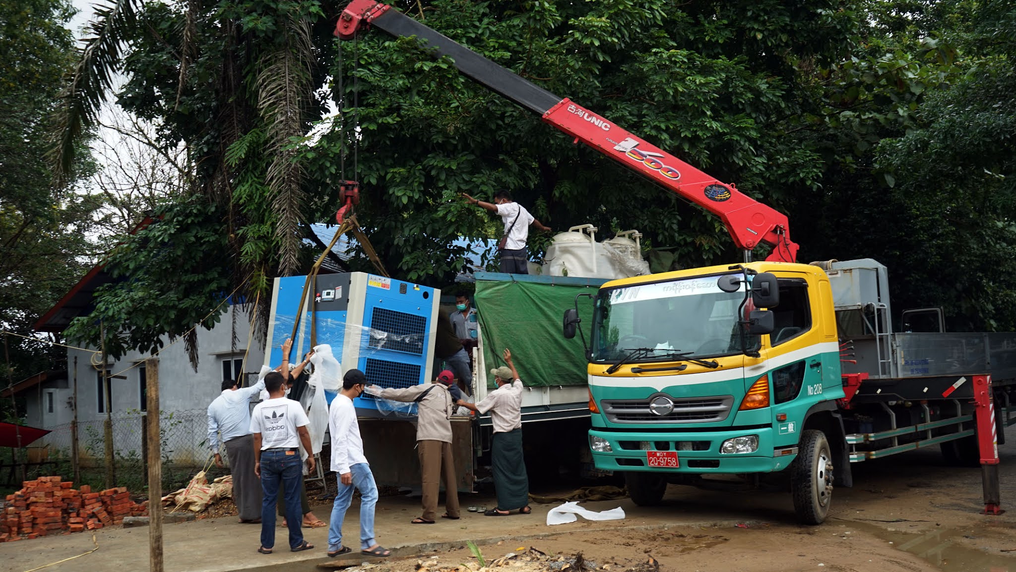တိုင်းဒေသကြီးအစိုးရအဖွဲ့မှလှူဒါန်းသည့် အောက်ဆီဂျင်စက်ကို ပြည်သူ့ဆေးရုံတွင် တည်ဆောက် လျက်ရှိသည့် အောက်ဆီဂျင်စက်ရုံအတွင်း တပ်ဆင်ဆောင်ရွက်ရန် မော်တော်ယာဉ်မှ စက်ရုံအတွင်းသို့ သယ်ယူဆောင်ရွက်နေမှုအား ကမ်းရိုးတန်းဒေသတိုင်း စစ်ဌာနချုပ် ဒုတိယတိုင်းမှူး ဗိုလ်မှူးချုပ် သစ်လွင်ထူး၊ ခရိုင်စီမံ အုပ်ချုပ်ရေးအဖွဲ့ဥက္ကဋ္ဌ ဦးဉာဏ်ဇော်၊ မြို့နယ် စီမံအုပ်ချုပ်ရေးအဖွဲ့ဥက္ကဋ္ဌနှင့် တာဝန်ရှိသူများက ကြီးကြပ်ဆောင်ရွက်ခဲ့ကြသည်။
