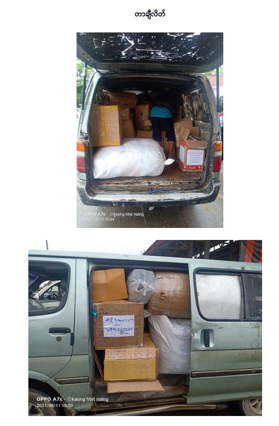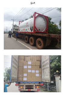 ယာဉ်(၂)စီးဖြင့် (၃၅)တန်၊ အောက်ဆီဂျင်အရည်(အိုးဖြင့်) (၇)တန်၊