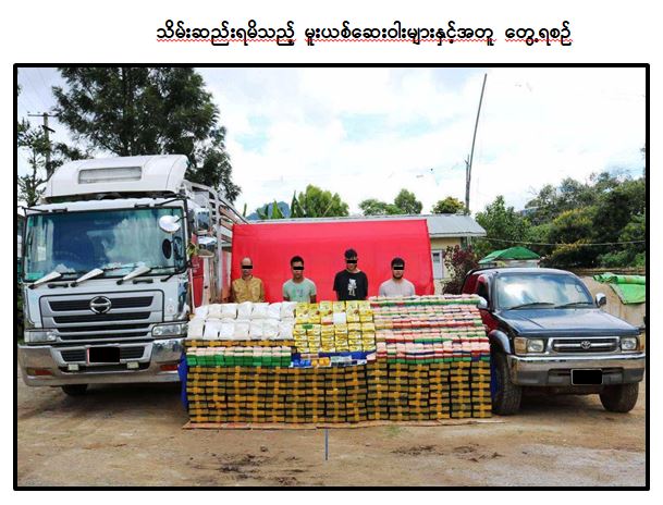 ဖြစ်စဉ်မှာ မူးယစ်ဆေးဝါးတားဆီးနှိမ်နင်းရေးရဲတပ်ဖွဲ့မှ တပ်ဖွဲ့ဝင်များပါဝင်သော ပူးပေါင်း အဖွဲ့ သည် ဩဂုတ်လ ၂၆ ရက်နေ့ မွန်းလွဲ ၁ နာရီအချိန်ခန့်တွင် လွိုင်လင်မြို့နယ်၊ လွိုင်လင်-တောင်ကြီး ကားလမ်း၊ ဟိုတင့်ကျေးရွာအနီးတွင် လွိုင်လင်မှ တောင်ကြီးသို့ ယာဉ်မောင်း စိုင်းလောဝ်လိုင်း (ခ)အိုက်လောဝ် (၄၁)နှစ် မောင်းနှင်ပြီး စိုင်းလိန်(ခ)အိုက်လိန်(၂၀)နှစ် လိုက်ပါ လာသည့် ၁၂ ဘီး မော်တော်ယာဉ်ကို သတင်းအရရှာဖွေရာ ဒေသကာလတန်ဖိုး ငွေကျပ် ၁ ဒသမ ၈ ဘီလီယံကျော် တန်ဖိုးရှိ ဘိန်းဖြူ ၅၃ ဒသမ ၉၉ ကီလို၊ အိုက်စ်(မက်သ်အဖက်တမင်း) ၅၀ ကီလို၊ စိတ်ကြွရူးသွပ် ဆေးပြား ၂၄,၀၀၀ တို့ကို သိမ်းဆည်းရမိခဲ့ပြီး စစ်ဆေးပေါ်ပေါက် ချက်များအရ မွန်းလွဲ ၂ နာရီခွဲခန့်တွင် မူးယစ်ဆေးဝါးများ သယ်ဆောင်ရာတွင် ပူးပေါင်း ဆောင်ရွက်သူများ ဖြစ်ကြသည့် ကျင်းထန်(ခ) ရှီကျင်းထန် (၂၇)နှစ်၊ ရန်ကျုံးဝေ(ခ)အားဝေ (၂၁) နှစ်တို့ကို Toyota Hilux မော်တော်ယာဉ်နှင့်အတူ တောင်ကြီးမြို့နယ်၊ ၄ မိုင်ပူးပေါင်း စစ်ဆေးရေးစခန်းတွင် ဆက်လက်ဖမ်းဆီးရမိခဲ့သဖြင့် ၎င်းတို့အား မူးယစ်ဆေးဝါးနှင့် စိတ်ကို ပြောင်းလဲစေသောဆေးဝါးများဆိုင်ရာ ဥပဒေအရ အရေးယူထားရှိပြီး ကွင်းဆက်ပြစ်မှု ကျူးလွန်သူများ အား စစ်ဆေးဖော်ထုတ်လျက်ရှိကြောင်း သိရသည်။