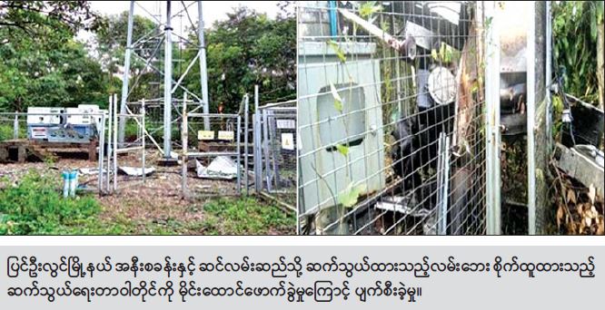တောင်ယာကွက်ထဲ၌ စိုက်ထူထား ရှိသည့် Mytel/Telenor/Ooredoo ဆက်သွယ်ရေးစက်များနှင့် ဘတ္ထရီအိုးများ