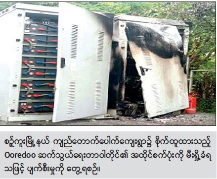 တစ်လုံးပေါက်ကွဲ ထားသည်ကို တွေ့ရှိရပြီး ပေါက်ကွဲမှုကြောင့် Ooredoo ဆက်သွယ်ရေးစက်များ